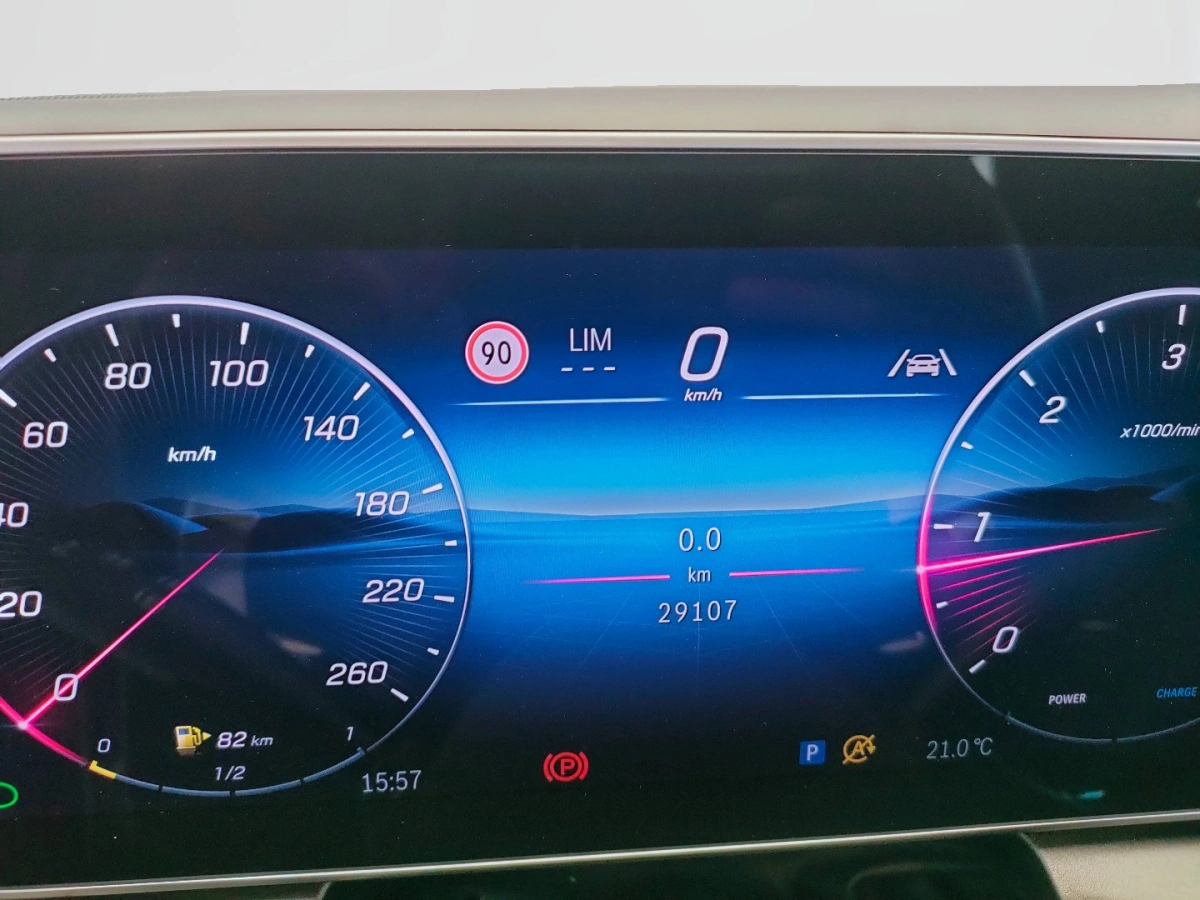 Cerchi in lega AMG da 50,8 cm (20") a razze verniciati in nero e torniti con finitura a specchio, con pneumatici anteriori 255/45 R20 su 8,5 J x 20 ET 34,5, posteriori 285/40 R20 su 9,5 J x 20 ET 35,5; passaruota in tinta con la carrozzeria